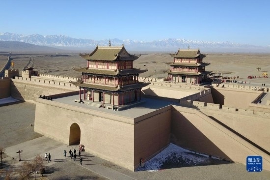 3月4日,游客在嘉峪關(guān)關(guān)城景區(qū)參觀游覽(無人機(jī)照片)。