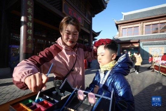 3月3日,在嘉峪關(guān)方特絲路神畫景區(qū),小朋友體驗(yàn)園區(qū)面部彩繪項(xiàng)目。
