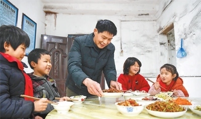 賴小田為孩子們準(zhǔn)備好飯菜。