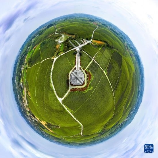 這是貴州省湄潭縣的“萬畝茶?!憋L(fēng)光(無人機照片,2021年4月12日攝)。