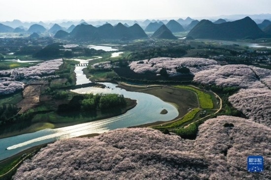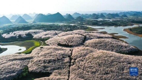 貴州省貴安新區(qū)櫻花園風(fēng)貌(3月21日攝,無人機照片)。