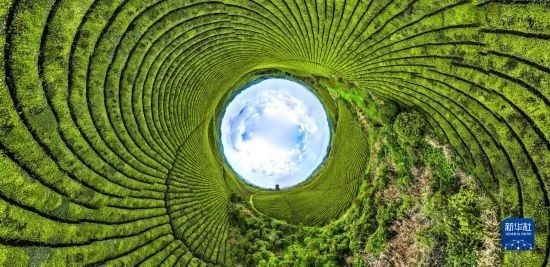 4月4日拍攝的遵義市湄潭縣永興鎮(zhèn)“萬畝茶海”(無人機全景拼接照片)。