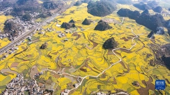 這是3月12日拍攝的貴州省貴定縣盤江鎮(zhèn)“金海雪山”景區(qū)油菜花海(無人機照片)。