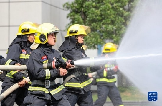 5月4日,貴州省銅仁市玉屏侗族自治縣消防救援大隊(duì)青年消防員在進(jìn)行訓(xùn)練。