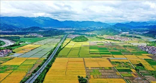 浙江臨海,永豐鎮(zhèn)田園里麥田與青山構(gòu)成了一幅美麗的田園畫(huà)卷。