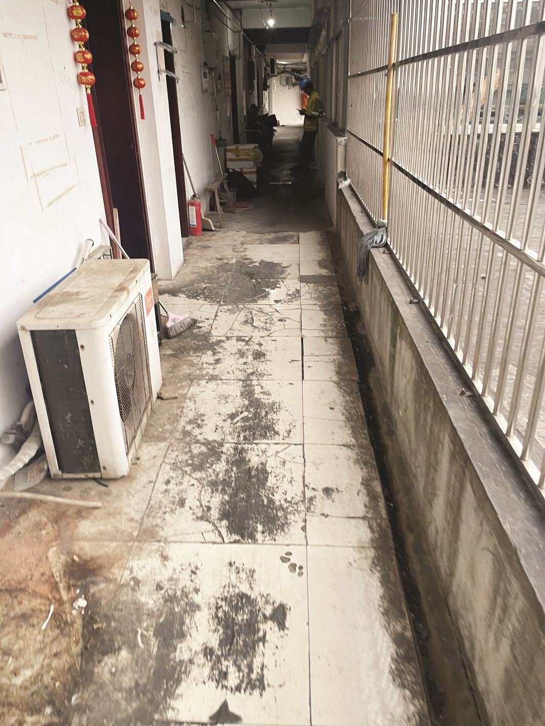 一層樓擠著十幾家外賣店,地面油垢厚積