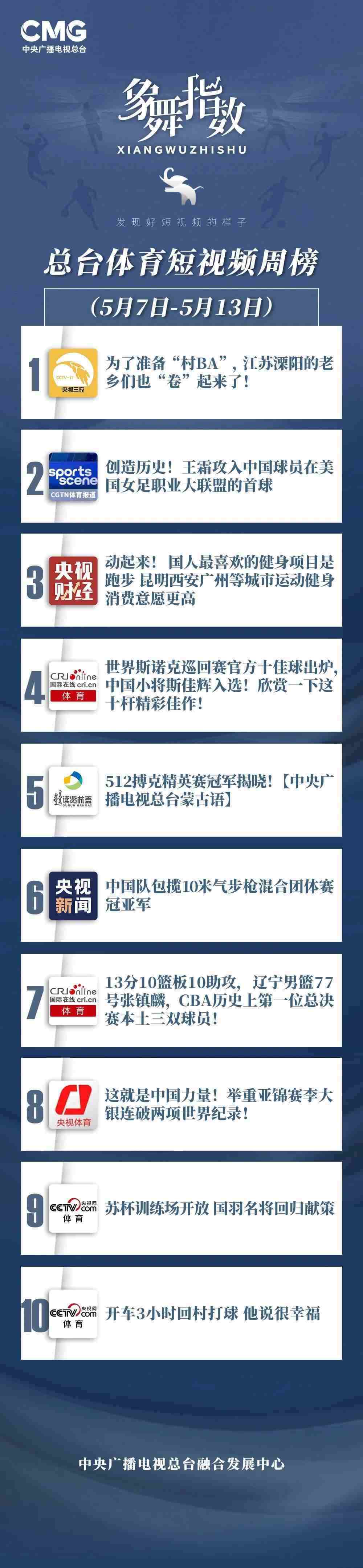 象舞指數(shù)|體育短視頻周榜(5月7日—5月13日)