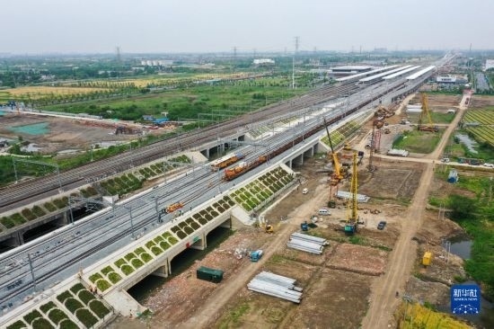 這是5月20日拍攝的滬寧沿江高鐵太倉站施工現(xiàn)場(chǎng)(無人機(jī)照片)。