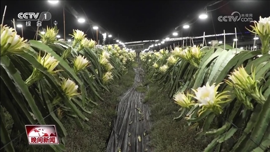 火龍果基地 農(nóng)戶 韋群良:為什么要開燈,感覺這不是很浪費(fèi)電什么的,就這樣覺得,后面才知道開原來(lái)是開燈催花,要花來(lái)得更快,一年開燈的話也多個(gè)一兩批花。