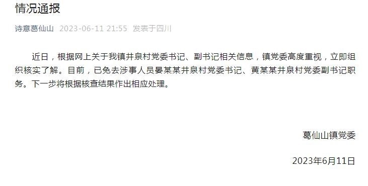·官方通報(bào)村副書記出軌村書記:涉事2人被免職。