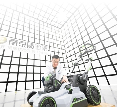 隔壁的控制室內,南京泉峰科技有限公司測試中心安全認證部經理高揚正和技術人員一起操作檢測設備,對這款割草機進行輻射測定。結果顯示,超低的輻射量符合出口要求。