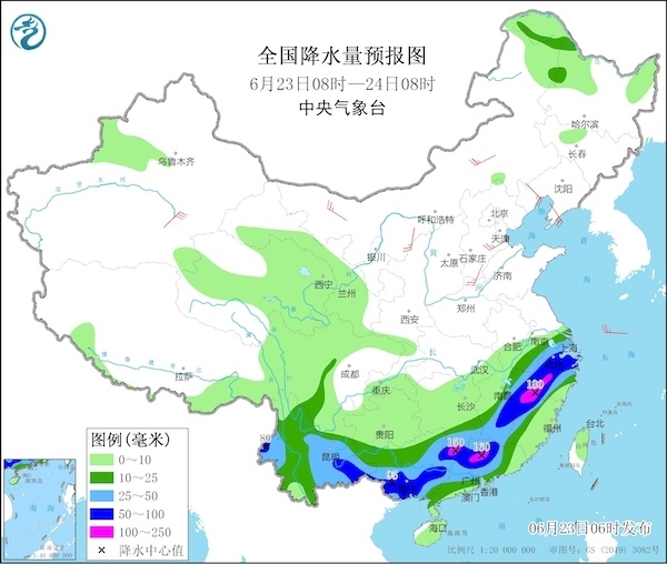 22日,南方地區(qū)普遍被雨水籠罩,浙江、福建、江西、湖南、廣西、廣東及云南東部的部分地區(qū)出現(xiàn)大到暴雨,廣西貴港、廣東清遠局地降雨量甚至達到200毫米至244毫米。