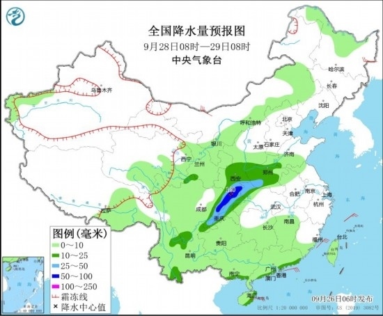 全國降水量預(yù)報圖(9月28日08時-29日08時) 圖片來源:中央氣象臺網(wǎng)站