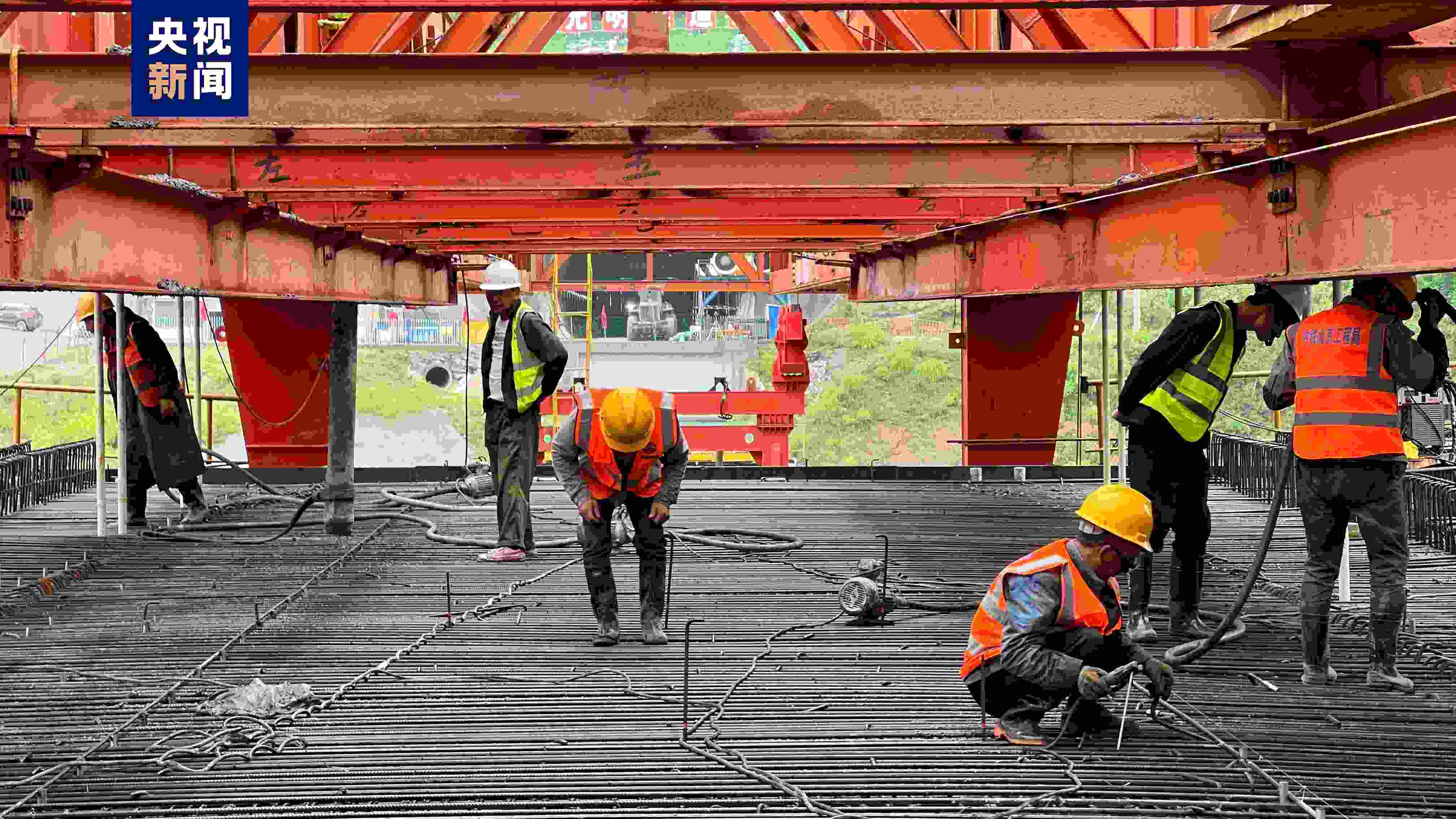 河水壩大橋位于重慶市開州區(qū)巫山鎮(zhèn)河龍村北側(cè),橋址跨越河谷地形起伏較大,植被茂密,水面寬約12米,橋址地層巖性主要為軟塑狀粉質(zhì)黏土,層厚約2.1米,具有承載力低、壓縮性高、厚度分布不均等特點(diǎn),地質(zhì)條件較為復(fù)雜。本次澆筑成功的是河水壩大橋首孔現(xiàn)澆梁,經(jīng)過施工人員連續(xù)10小時(shí)的奮戰(zhàn),孔長32m,高3.03m,重約900t的移動模架現(xiàn)澆梁順利完成混凝土澆筑。據(jù)中鐵北京工程局成達(dá)萬高鐵項(xiàng)目一工區(qū)經(jīng)理烏小平介紹:“河水壩大橋首孔現(xiàn)澆梁采用移動模架現(xiàn)澆法施工,制梁具有機(jī)械化程度高、靈活性強(qiáng)、節(jié)約人力成本、施工周期短、使用輔助設(shè)備少、重復(fù)利用性高等特點(diǎn),既保證了工程質(zhì)量,又能加快施工進(jìn)度,具有良好的經(jīng)濟(jì)效益?!币苿幽<墁F(xiàn)澆法施工有效解決了控制性工程長大隧道架梁機(jī)無法及時(shí)架梁的問題,縮短了整體工期,確保項(xiàng)目按期順利推進(jìn)。