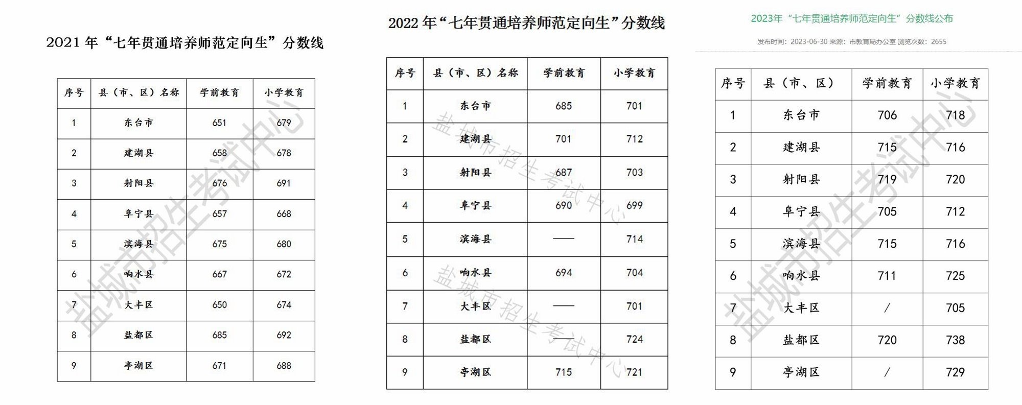 根據(jù)鹽城市教育局公布的2021年-2023年“七年貫通培養(yǎng)師范定向生”分?jǐn)?shù)線來看,該項(xiàng)目的錄取分?jǐn)?shù)線也在逐年升高。學(xué)前教育專業(yè)錄取分?jǐn)?shù)線從最高685分升至最高720分,小學(xué)教育專業(yè)錄取分?jǐn)?shù)線從最高692升至最高738分。