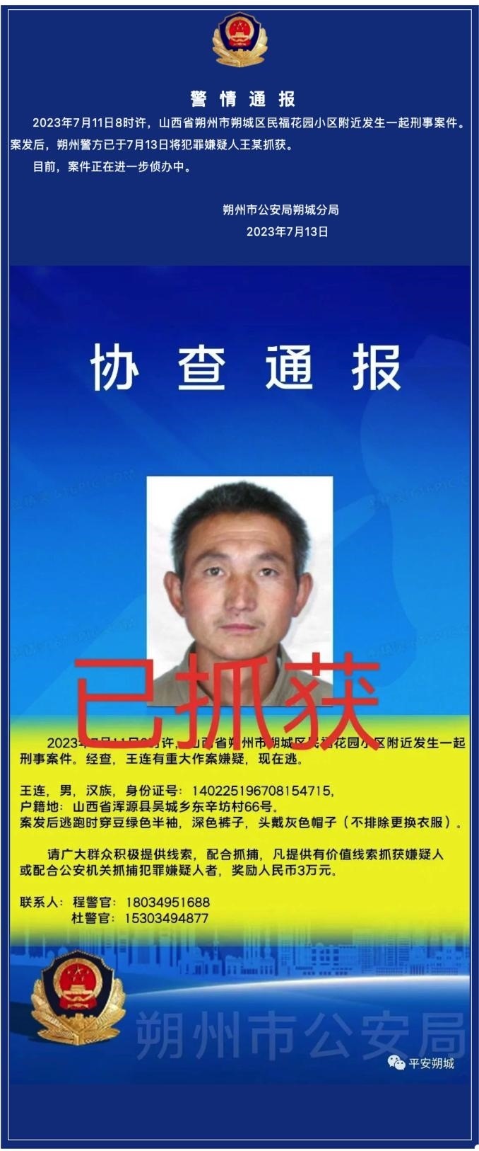 ·山西朔城警方通報(bào):殺害隊(duì)長(zhǎng)的環(huán)衛(wèi)工已被捕。
