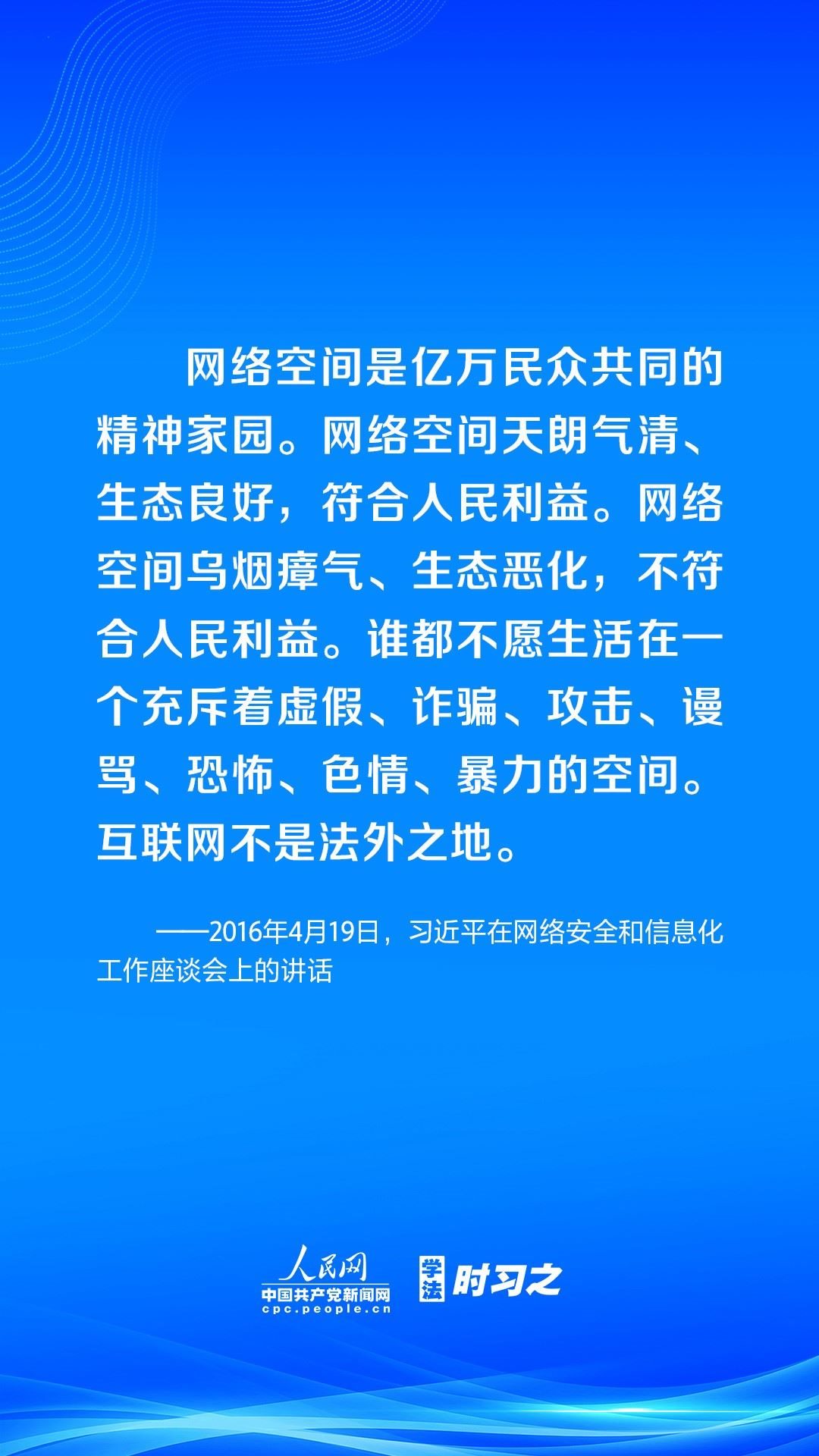 營造風清氣正的網(wǎng)絡空間,離不開法治手段的保障。黨的十八大以來,習近平總書記高度重視網(wǎng)絡法治工作,強調要堅持依法治網(wǎng)、依法辦網(wǎng)、依法上網(wǎng),讓互聯(lián)網(wǎng)在法治軌道上健康運行。