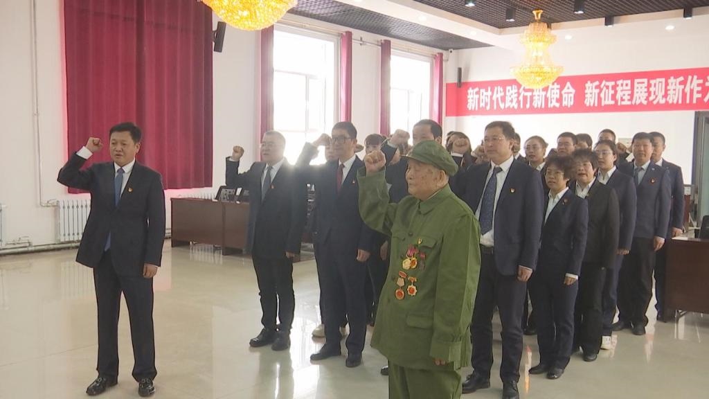2023年4月6日,霍林河煤業(yè)集團(tuán)有限責(zé)任公司(以下簡稱霍煤集團(tuán))大樓會議室,96歲老兵顧克明在鮮紅黨旗前再次舉起右拳,莊嚴(yán)宣誓加入中國共產(chǎn)黨。