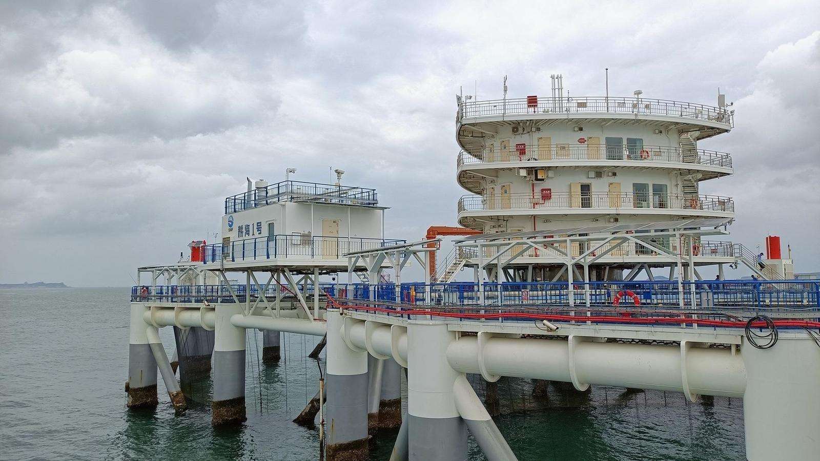 在山東省煙臺(tái)市萊山區(qū)漁人碼頭以東四十里灣海域,“耕海1號(hào)”像是一條正在遨游的魚,魚頭是包括海洋科普館、水樂園等在內(nèi)的主體平臺(tái),魚尾由3個(gè)直徑40米的圓形子網(wǎng)箱組成,網(wǎng)箱里養(yǎng)殖著斑石鯛、紅鰭東方鲀等優(yōu)質(zhì)海水魚。7月29日,在“高質(zhì)量發(fā)展調(diào)研行”山東主題采訪活動(dòng)中,山東海洋集團(tuán)耕??萍伎偨?jīng)理尉巖說(shuō),“耕海1號(hào)”依托5G技術(shù)等,以科技創(chuàng)新提升漁業(yè)養(yǎng)殖效率,并將智慧漁業(yè)、科技研發(fā)、科普教育等功能有機(jī)結(jié)合起來(lái),探索海洋牧場(chǎng)多元融合發(fā)展新模式。