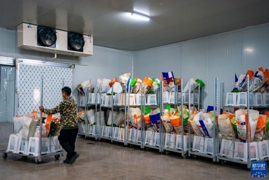 在云天化晉寧花卉產業(yè)現代化示范園內,一名花農將新采摘的鮮花推入冷庫進行預冷處理(7月12日攝)。新華社記者 陳欣波 攝