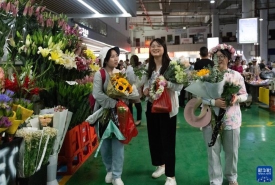 幾名外地游客在昆明斗南花卉市場內購買鮮花(7月13日攝)。新華社記者 陳欣波 攝