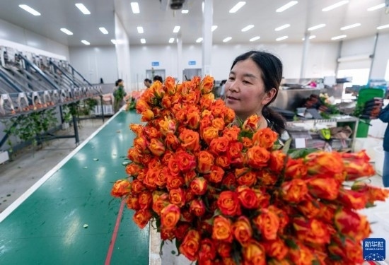 清晨,在云南省昆明市晉寧區(qū)云天化晉寧花卉產業(yè)現代化示范園內,品類各異的鮮花競相綻放,花農們在現代化大棚里忙著采摘、搬運。云天化晉寧花卉產業(yè)現代化示范園是集育苗、智能溫室大棚、水肥一體化、無土綠色栽培、全程數字化管理系統,以及鮮切花采后處理、預冷儲藏等為一體的高標準設施農業(yè)產業(yè)園區(qū),年產鮮切花1.6億枝。