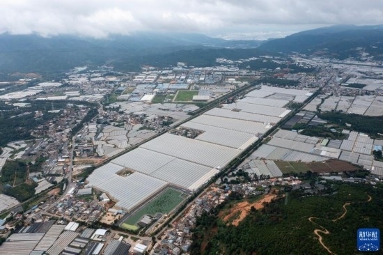 這是7月12日拍攝的云天化晉寧花卉產業(yè)現代化示范園(無人機照片)。新華社記者 陳欣波 攝