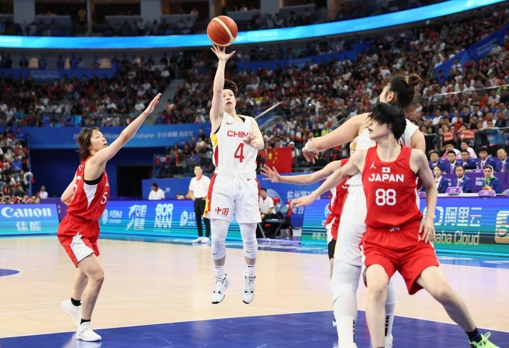 決賽開(kāi)場(chǎng),兩隊(duì)球員都略顯緊張,中國(guó)隊(duì)幾次中投失手,日本隊(duì)數(shù)次快攻也未能建功。依靠韓旭在內(nèi)線的牽制,黃思靜連續(xù)命中2記遠(yuǎn)投,李夢(mèng)突破打成“2+1”,中國(guó)隊(duì)打出17:7的開(kāi)局。面對(duì)身材更高大的中國(guó)姑娘,日本球員通過(guò)不斷突破傳球創(chuàng)造得分機(jī)會(huì)。首節(jié),中國(guó)隊(duì)26:16領(lǐng)先對(duì)手。