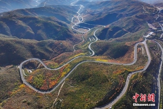 10月15日,航拍山西省太原市天龍山秋景絢麗。近日,天龍山迎來秋景最佳觀賞期。中新社記者 武俊杰 攝