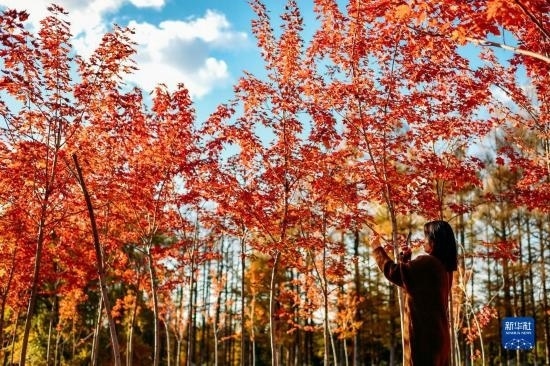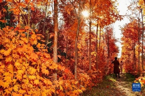 10月19日,游人在長(zhǎng)春市百木園內(nèi)觀賞秋景。