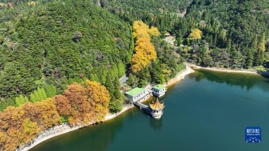 10月20日拍攝的廬山如琴湖秋景(無人機照片)。