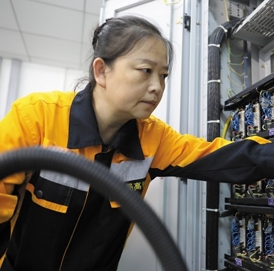 鄭小燕正在對(duì)配線進(jìn)行排查核對(duì)。和子龍攝