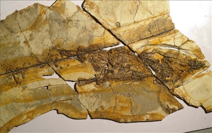 圖為此次發(fā)現(xiàn)的劍龍類恐龍化石。新華社記者曹國(guó)廠 攝