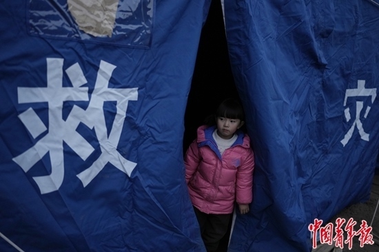 韓福成的兩個小女兒年紀小,對地震沒什么感覺,“還想著睡覺”;獨自在縣中寄宿的大女兒和老師在一起,“不冷,也不會很害怕”。