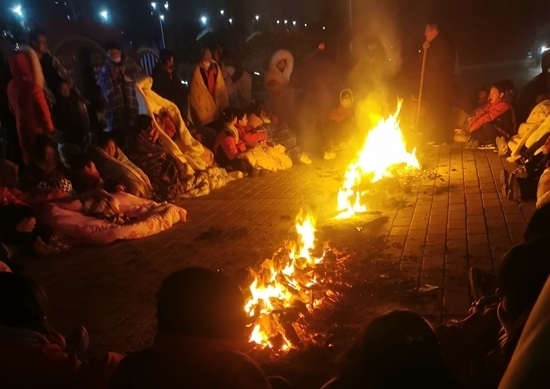 該校教師喬海龍在細節(jié)中看出了孩子們的恐慌,“門廳的玻璃被擠破了,很多學生都只穿著單衣拖鞋”。零下十幾攝氏度的寒風中,孩子們三三兩兩抱作一團,老師們站成一圈,圍住學生。