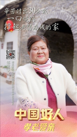 鄒愛華,女,1962年5月生,湖北省荊門市鐘祥市石牌鎮(zhèn)石牌社區(qū)居民。鄒愛華自幼腿部殘疾,她與聽障丈夫相攙相扶,支起一口燒鍋做蔥餅,20余年誠信經(jīng)營,供養(yǎng)兩個女兒完成學(xué)業(yè);她30余年無悔付出照顧殘疾親人,讓他們安心生活;她熱心幫助街坊鄰居,成為遠(yuǎn)近有名的“街長”。