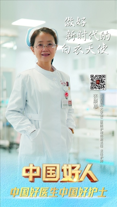 張穎惠,女,1971年12月生,中共黨員,山西醫(yī)科大學(xué)第二醫(yī)院護(hù)理部副主任、主任護(hù)師,第49屆南丁格爾獎?wù)芦@得者。從事護(hù)理工作30多年,她始終撲在一線,面對重大突發(fā)事件第一時間挺身而出;她帶領(lǐng)同事們不斷創(chuàng)新護(hù)理技術(shù),探索危重患者查房模式,構(gòu)建護(hù)理質(zhì)控體系;她積極為貧困地區(qū)、基層醫(yī)療機(jī)構(gòu)送知識、送技術(shù)、送教育、送專業(yè),用實際行動詮釋了新時代白衣天使的使命與擔(dān)當(dāng)。