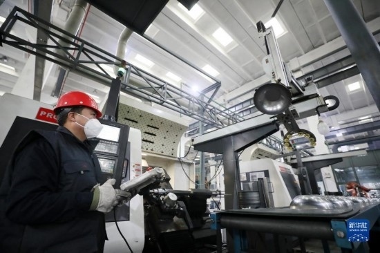 12月21日,在位于隆堯縣的河北遠(yuǎn)大閥門(mén)集團(tuán)有限公司鍛鋼高端定制車間,工人操控智能設(shè)備加工閥門(mén)產(chǎn)品。
