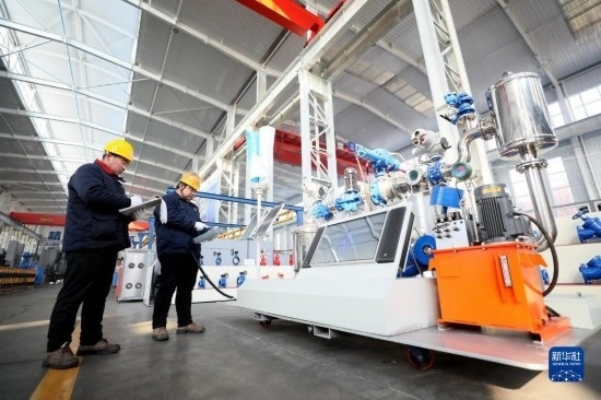 12月21日,在位于隆堯縣的河北遠(yuǎn)大閥門(mén)集團(tuán)有限公司大口徑車間,工人在查看智能調(diào)水設(shè)備運(yùn)行情況。