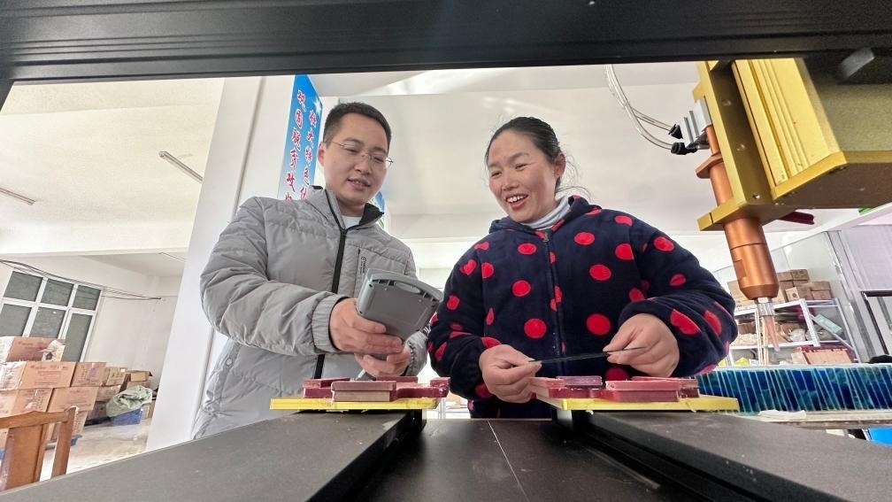 在六合新村平安社區(qū)創(chuàng)業(yè)車間,“90后”創(chuàng)業(yè)者楊威正仔細研究新設備:“這是前天剛到的新型高端打印機,能打印更精美的花紋圖案。隨著訂單越接越高端,客戶對于我們樣品的要求愈發(fā)嚴苛,我得抓緊研究明白這設備,趕在春節(jié)前做出第一批樣品?!?/p>