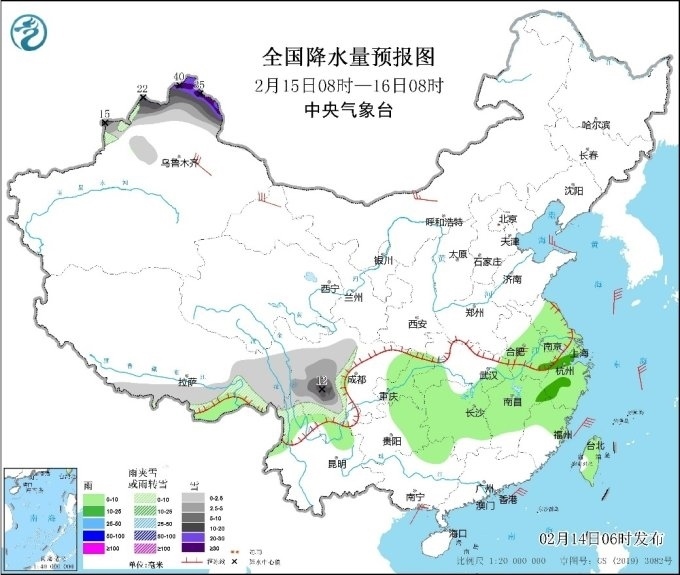 降水方面,今天,黑龍江東南部、吉林東部、山東中東部、山西南部、陜西南部及川西高原、西藏東部和南部有小到中雪或雨夾雪,山東半島、西藏東部局地大雪或暴雪;江蘇北部、安徽中北部、湖北東部、江西西北部、湖南東北部等地部分地區(qū)有中雨,局地大雨。