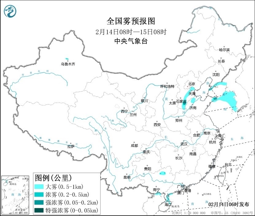中央氣象臺(tái)今晨繼續(xù)發(fā)布大霧黃色預(yù)警:預(yù)計(jì),今天白天至夜間,黃海北部及中部海域、遼東半島沿岸海域、山東半島東南部沿岸海域、北部灣北部海域、瓊州海峽、雷州半島東部沿岸海域及粵西沿岸海域?qū)⒂写箪F,能見度不足1公里;今晨,天津、河北東南部、廣西北部等地的部分地區(qū)有大霧天氣,其中河北東南部局地有能見度不足500米的濃霧。14日白天起,受冷空氣影響,華北中南部等地大氣擴(kuò)散條件轉(zhuǎn)好,霧霾天氣減弱消散。