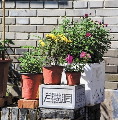 平整潔凈的石板路、頗具藝術(shù)風(fēng)格的手繪涂鴉、設(shè)計(jì)精巧的花池……走進(jìn)300多米長(zhǎng)的爛縵胡同,隨處都有引人駐足的景致,透著閑適與寧?kù)o。