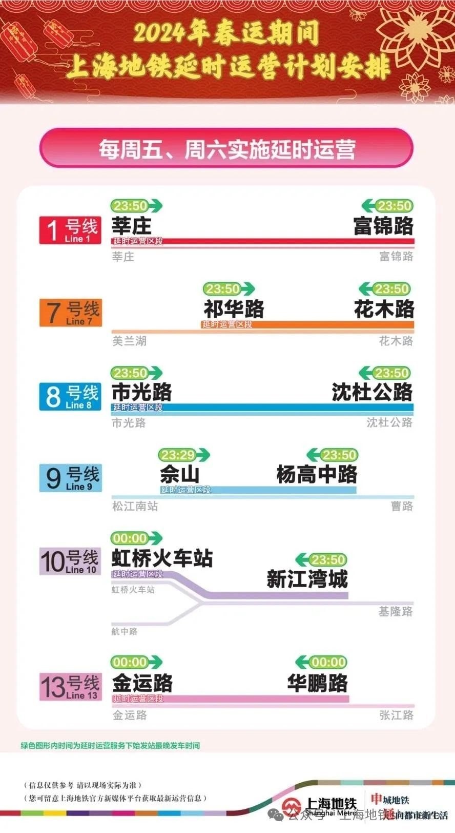 2月17日(周六),上海地鐵1、7、8、9、10、13號線繼續(xù)執(zhí)行常態(tài)周末延時運(yùn)營方案,提請市民乘客注意末班車時間。