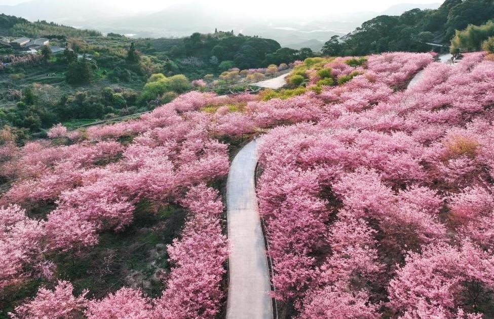 福建龍巖,仁隔山櫻花盛開(kāi),漫山遍野如云似霞。
