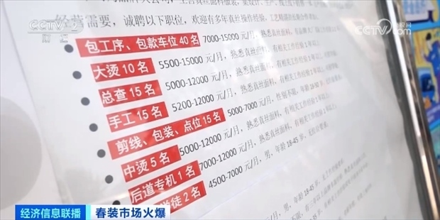 據了解,開春一般是服裝產業(yè)的用工旺季,訂單多,工人少,因此,此時的工價也是全年最高。