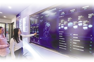 古蕩街道民生綜合體內(nèi),市民使用智慧屏查看民生綜合體相關(guān)情況。本報記者 江 南攝