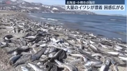 ·日本一海灘現(xiàn)沙丁魚尸體綿延7公里,當(dāng)?shù)卣粲蹙用癫灰|碰死魚。