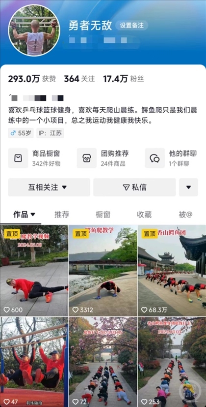 上游新聞?dòng)浾呖吹?,鱷魚健身團(tuán)最火的一個(gè)視頻獲得了上百萬的點(diǎn)贊量和上千萬瀏覽量,浙江、湖南等地也出現(xiàn)了類似健身團(tuán)體。
