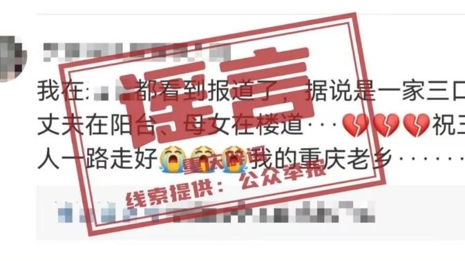 ·重慶辟謠“一家人上吊而死”:系網(wǎng)民拼湊杜撰。